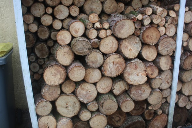 This morning I split a bunch of these and the wife stacked them in the garage….