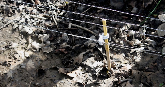 On checking the electric fence I can see the point of ingress last night where it twisted the strands in shock..