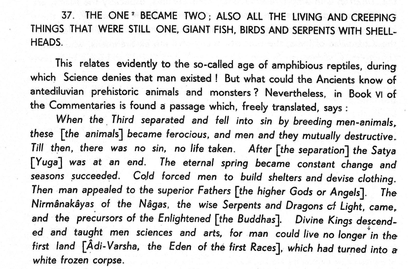 NOTE: These seven stanzas form only one true stanza out of the oldest book in the world, and one which the eye of the average man has never contacted. Only the sense is here given and not a literal translation, and certain phrases are eliminated in all of them for one or other of the three following reasons: Either the manuscript from which these extracts are taken lacks certain of the words or symbols which are missing on account of the extreme age of the material upon which the text is indited, or their insertion would convey too much knowledge to the man whose perception is sufficiently awakened. Thirdly, the insertion of the omitted words would only serve to awaken confusion and even ridicule on account of the impossibility of translating them correctly; they concern realizations far in advance of the comprehension of man at this time.