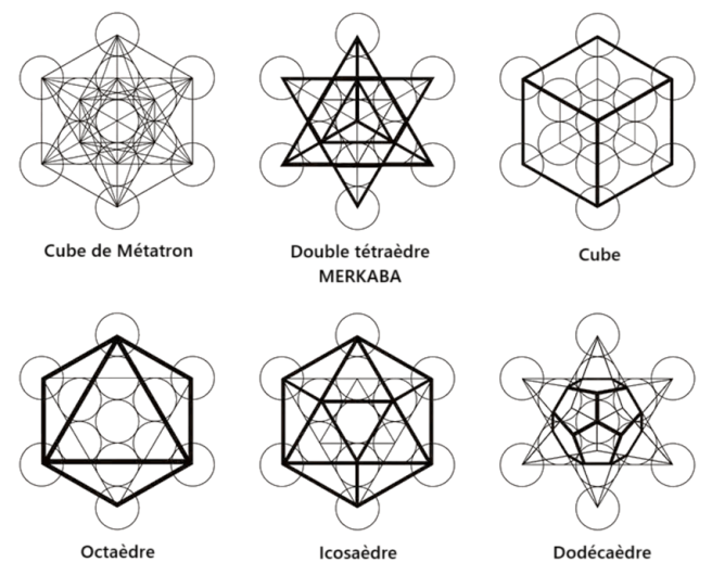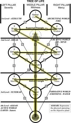 The cube of Metatron spans the “worlds” of Briah and Yetzirah but not the active world of earth Assiah. Through the “thread” of Da’at or Daath it touches God. The idea portrayed here is to become at-one with God Immanent by following the central column. Manifestation is the lightning strike down, 1,2,3,4,5 etc, return to the Father is up the central pillar.