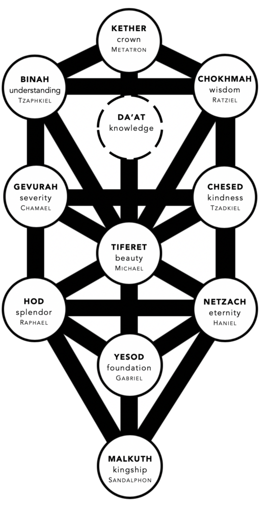 Various kabbala put Metatron at the crown of the tree of life befitting an archangel. “He” is on the central pillar in this depiction along with Michael, Gabriel and Sandalphon.