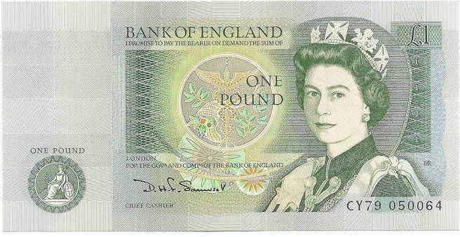 The old pound note {1981-1988} had a picture of the queen on it and in the example here a Caduceus. The flip side was Issac Newton. This would be the note that I used last.