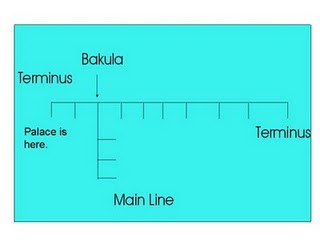 We leave the shops and seek out the train station. “All trains go through Bakula”, says the station announcer. We look at the map and it is configured like this.